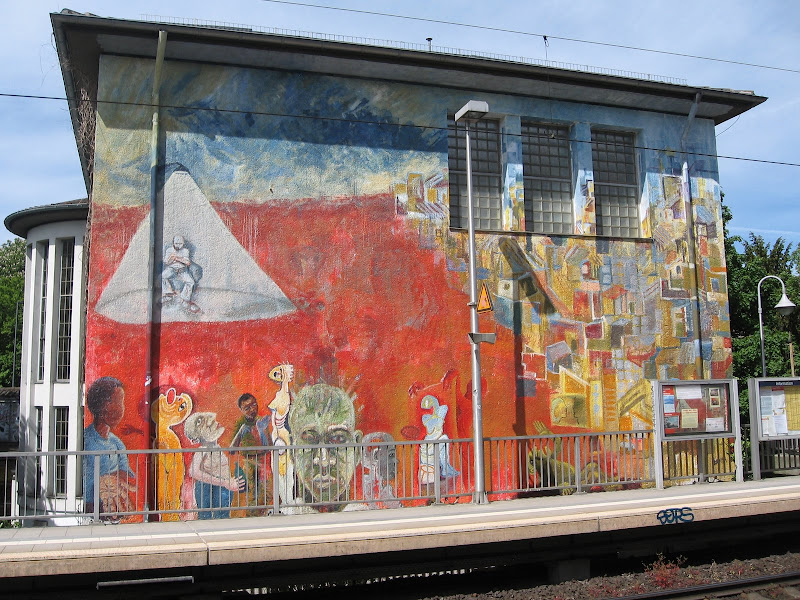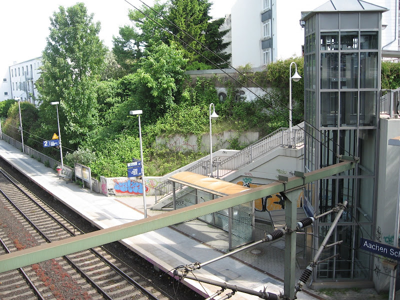 Эти фотографии делались на платформе Aachen-Schanz. Платформа эта новая. Она была построена несколько лет назад на действующем участке железной дороги; один из выходов был сделан на уже существовавший путепровод.